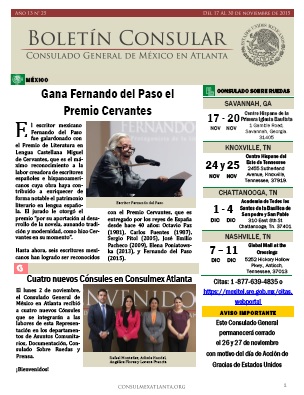 En esta sección podrá consultar las ediciones quincenales de nuestro Boletín Consular. En él encontrará información sobre eventos, noticias y demás temas de interés que se generen en México y en esta Representación Consular.