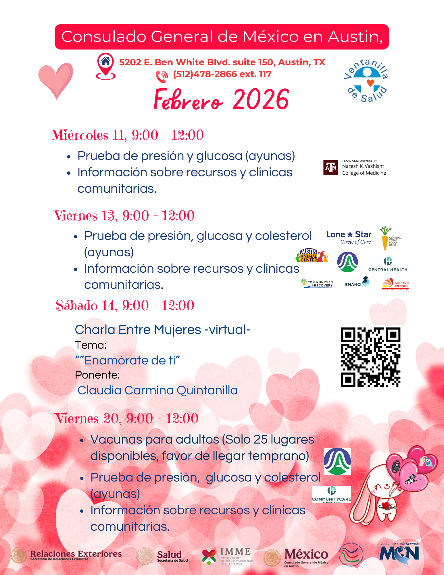 Calendario Ventanilla de Salud - Febrero 2026 ¡Cuida tu salud! Consulta el calendario de la Ventanilla de Salud del Consulado. ¡Te esperamos!