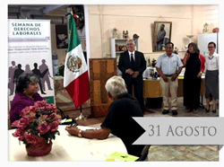 Viernes 28.08.15 | Reunión con Ernesto Pinal, Director de Promoción Internacional de la empresa NextScan. Conversaron sobre el premio que recibiría en septiembre por haber logrado que una PyME obtuviera los mayores rendimientos en materia de comercio internacional en Idaho. Es la primera persona de origen mexicano que obtiene esta distinción en el estado. Viernes 31.08.15 | Inauguración de la Semana de Derechos Laborales a cargo del Cónsul Titular, Celso Delgado.