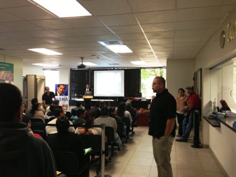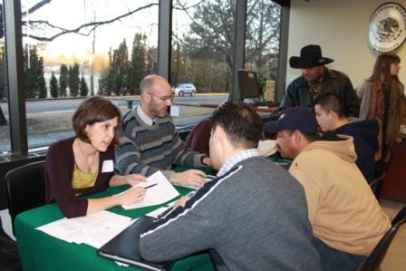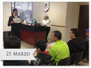 El jueves, 29 de abril de 2010, se llevó a cabo en el Consulado de México en Boise la tercera sesión de “charlas” sobre asuntos migratorios. El evento fue organizado por el Consulado en colaboración con la Red de Abogados Pro Bono de Idaho y tuvo la participación de 50 personas de la comunidad hispana. Los abogados atendieron varias consultas de los asistentes e identificaron casos en los que se proporcionará representación legal al solicitante. |