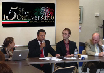 El pasado miércoles 30 de noviembre de 2011, el Consulado de México en Boise, en colaboración con el Museo Histórico del Estado de Idaho, auspició una recepción en conmemoración del 101 aniversario del inicio de la Revolución Mexicana y la presentación de la magna exhibición fotográfica “The Mexican Revolution and Beyond” del Archivo Casasola. El evento fue inaugurado por el Cónsul Ricardo Pineda y Janet Gallimore, Directora Ejecutiva de la Sociedad Histórica del Estado de Idaho. En este contexto, el profesor Errol Jones de la Universidad Estatal de Boise, ofreció una reseña histórica sobre la Revolución Mexicana y su impacto, no sólo en México, sino en Estados Unidos y en la relación bilateral entre ambos países. Durante el evento, Sergio Inurrigaro, Presidente de la Asociación Pro-Cultura del Mezcal, realizó una presentación sobre la historia, cultura y la producción del Mezcal acompañado de una muestra de comida prehispánica. Asimismo, los asistentes disfrutaron de las presentaciones artísticas de baile folclórico y música de mariachi. |