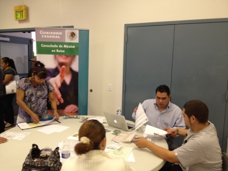 El pasado sábado 27 de agosto de 2011, el Consulado de México en Boise realizó su octavo Consulado Móvil del año. Durante la jornada se realizaron trámites de pasaporte y matrícula consular, así como de registro civil y fe notarial. Asimismo, organizaciones dieron información sobre educación financiera, asuntos migratorios, salud y asuntos fiscales (impuestos). |