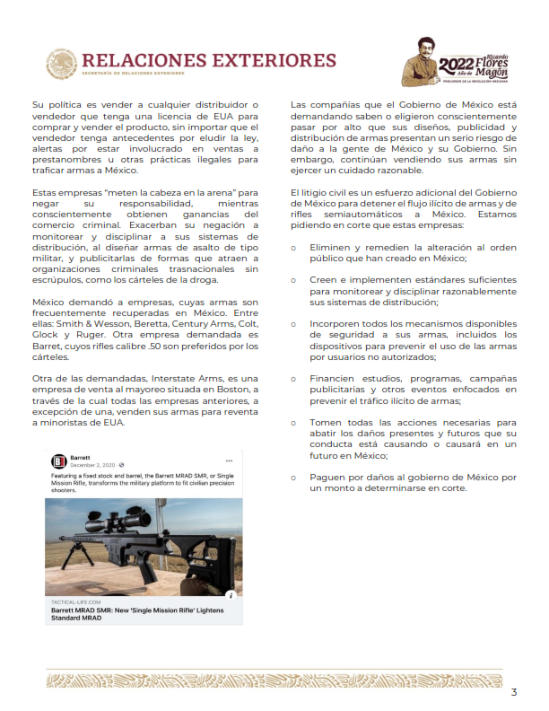 Lawsuit of the Government of Mexico against gun manufacturers and distributors in the U.S.