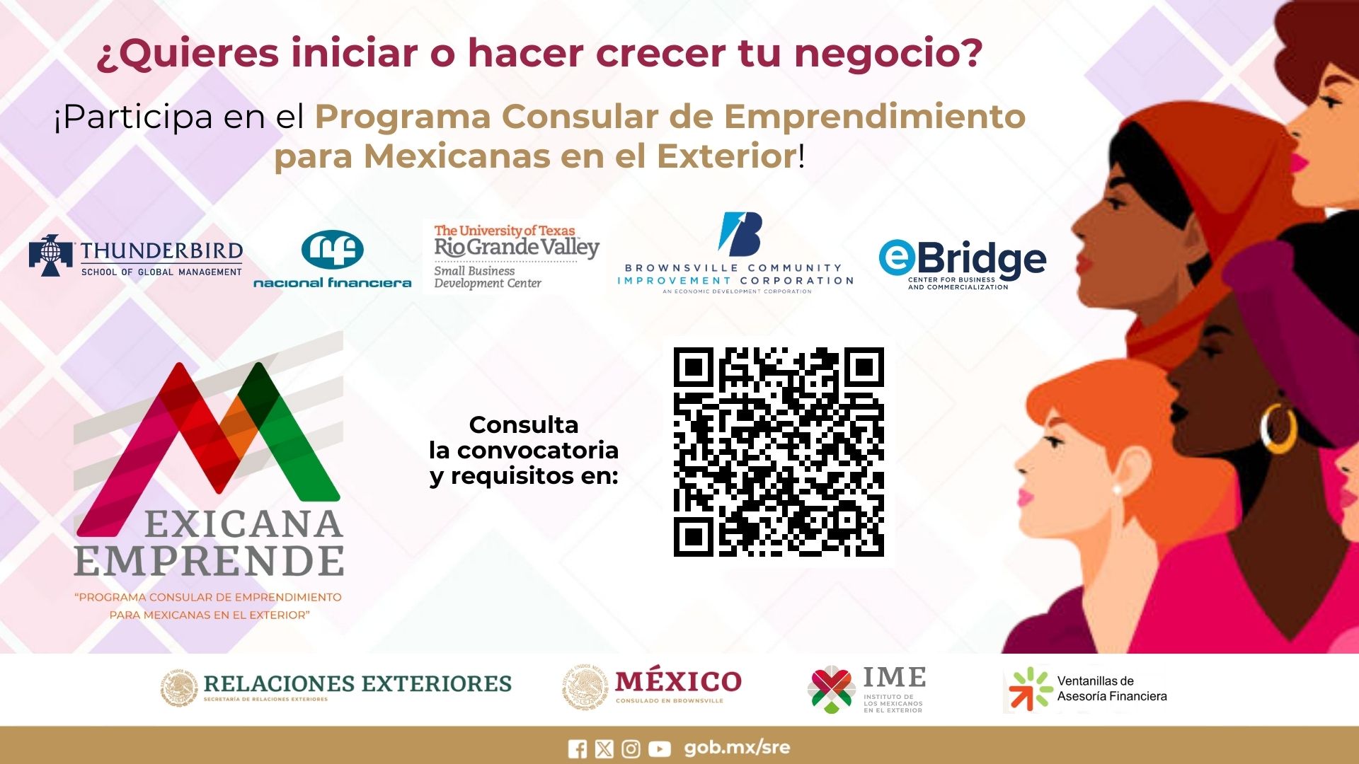 El Consulado de México en Brownsville, te invita a participar en la 5a Edición del Programa Consular de Emprendimiento para Mexicanas en el Exterior (PCEME).