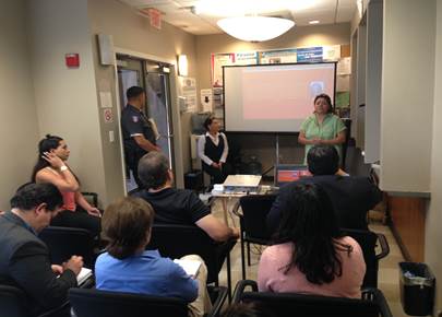 La Sra. Rosa Díaz, Directora del Centro, acompañada por colaboradores y voluntarios del mismo, impartió un Taller informativo y de sensibilización a los Prestadores de Servicios Profesionales y personal del SEM adscrito en esta Representación, cuyo objetivo fue reseñar las situaciones de discriminación que prevalecen en Valle Imperial respecto a la comunidad LBTG, así como presentar información y mejores prácticas para brindar un servicio al público de excelencia que tome en cuenta las realidades y situación que vive esta comunidad en el Condado de Imperial.