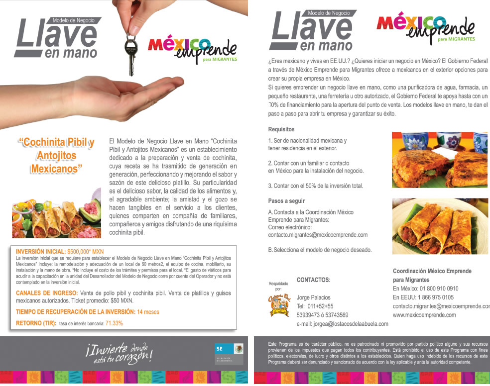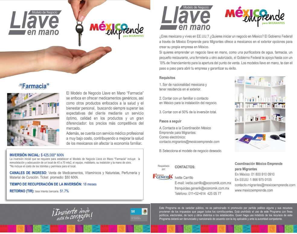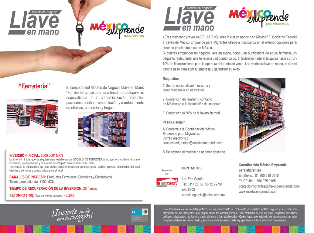 México Emprende para Migrantes es una estrategia de la Secretaría de Economía para hacer llegar a los mexicanos en el exterior, los apoyos que el Gobierno Federal ofrece para crear o hacer crecer una empresa en México.