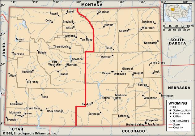 Los siguientes 13 condados del Este de Wyoming: Albany, Crook, Natrona, Weston, Campbell, Goshen, Niobarra, Carbon, Johnson, Platte, Converse, Laramie y Sheridan.
