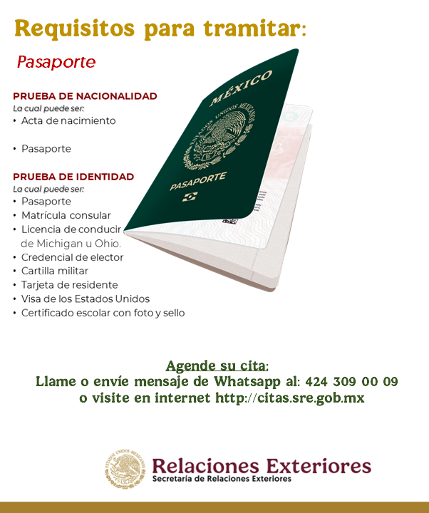 Para hacer su cita puede llamar o enviar un mensaje de Whatsapp al (424)-309-0009 o en la página web http://citas.sre.gob.mx