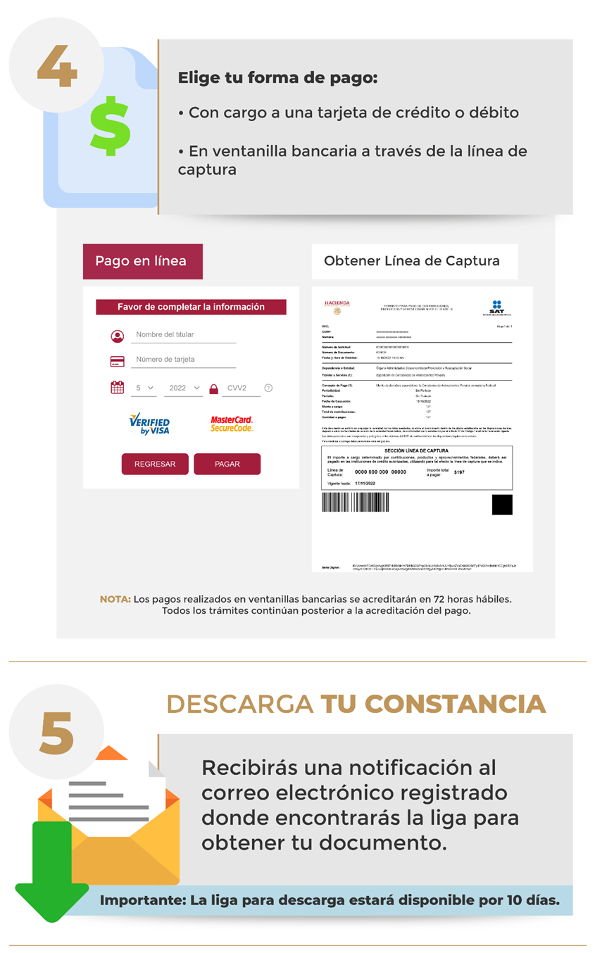Para concluir la gestión, realice el pago con una tarjeta de una institución bancaria mexicana, que no necesariamente debe estar a su nombre.