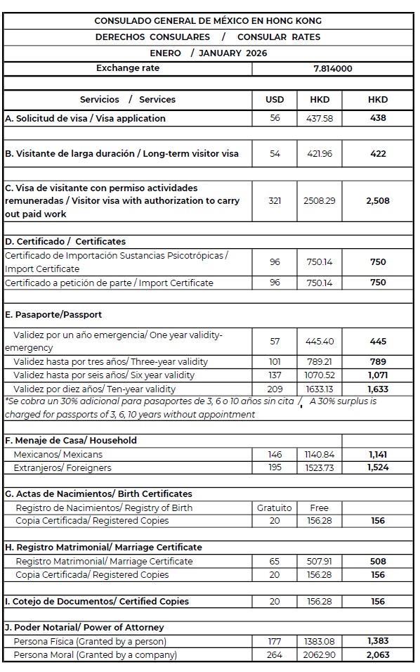 DERECHOS POR SERVICIOS CONSULARES