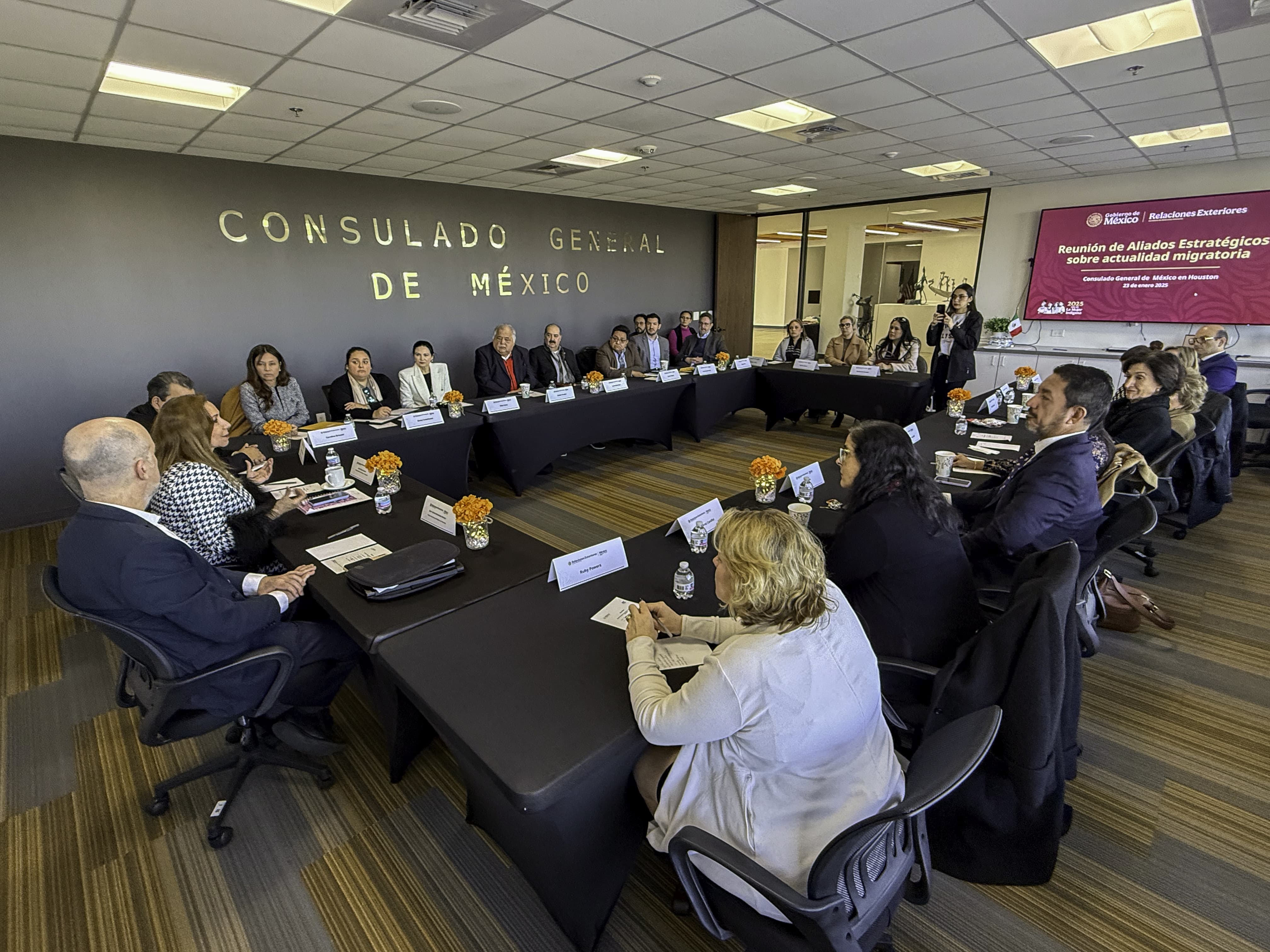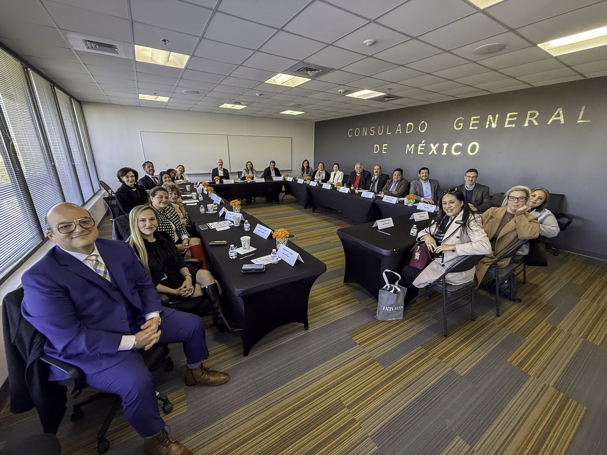 La Cónsul General María Elena Orantes encabezó una reunión con aliados estratégicos para discutir temas cruciales sobre protección y actualidad migratoria. Durante el encuentro, se destacó la importancia de fomentar una mayor colaboración entre los aliados y se habló de estrategias para garantizar la protección efectiva de la comunidad mexicana. Además, se presentó la aplicación “ConsulApp Contigo”, diseñada para notificar a las autoridades consulares y brindar apoyo legal a los connacionales. Este encuentro reafirma el compromiso del consulado de fortalecer la colaboración y brindar un apoyo integral a nuestros connacionales.