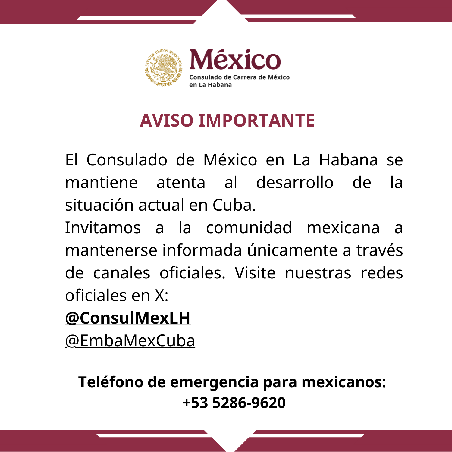 Aviso a la comunidad mexicana