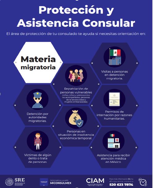 Objetivo: Orientar y asesorar a las personas mexicanas detenidas por las autoridades migratorias y a sus familiares, a fin de explicar el proceso a seguir y asegurarse de que en todo momento se respeten la integridad y los derechos humanos de los detenidos.