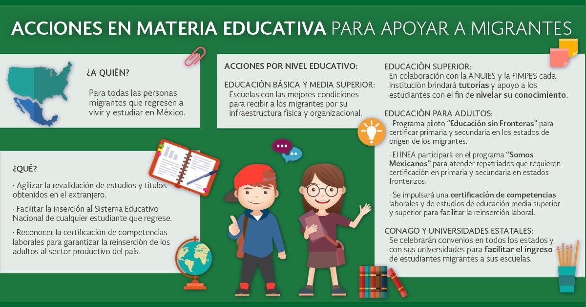 Si regresas a México procedente de Estados Unidos y quieres iniciar o continuar tus estudios, te informamos que se están implementando diversas medidas para facilitar tu ingreso o reingreso en cualquier nivel del Sistema Educativo Nacional: