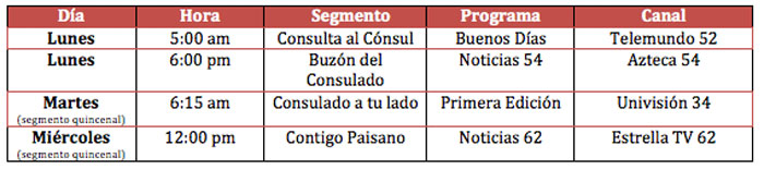 Este Departamento ha consolidado los siguientes espacios informativos para difundir los distintos servicios del Consulado General: