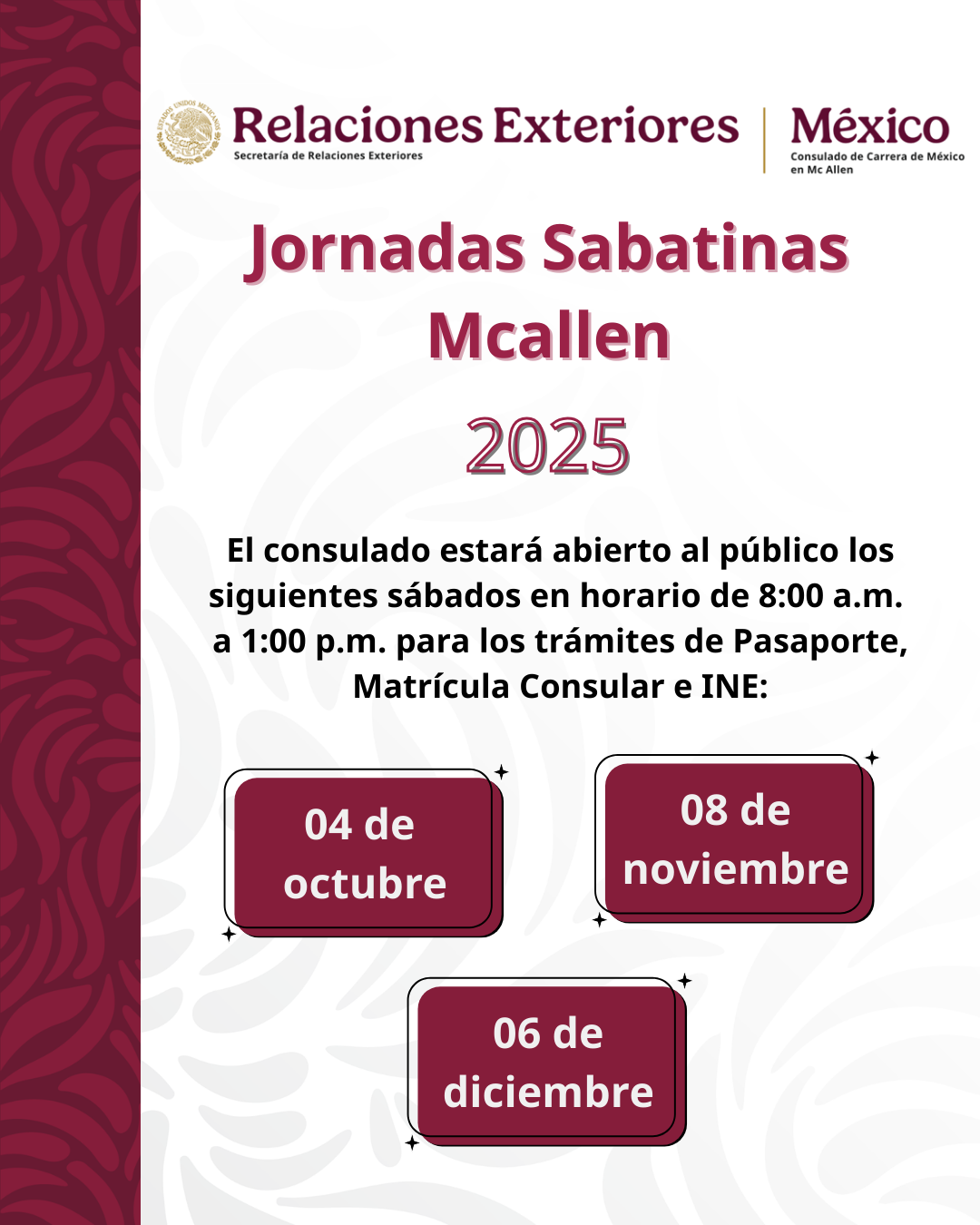 JORNADAS SABATINAS 2025 Debe realizar su cita mediante WhatsApp o por teléfono al número gratuito 1(424) 309-0009 También puede obtenerla sin intermediarios ni gestores a través de la página: https://citas.sre.gob.mx/ Creado: 24 Septiembre 2025 Última actualización: 03 Octubre 2025