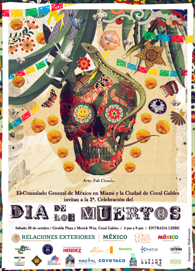 El Consulado General de México en Miami, la ciudad de Coral Gables y la organización privada VisitMéxico, presentan la segunda edición del reconocido evento de “Día de Muertos” el próximo sábado 30 de octubre. El programa comunitario y cultural será presidido por el Cónsul General Jonathan Chait y el Alcalde Vince Lago, respectivamente.