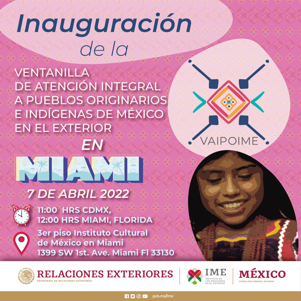 La Secretaría de Relaciones Exteriores de México, a través del Instituto de Mexicanos en el Exterior (IME), ha iniciado un nuevo servicio en todos los Consulados de México en Estados Unidos conocida como "Ventanilla de Atención a Pueblos Originarios e Indígenas de México en el Exterior” (VAIPOIME).
