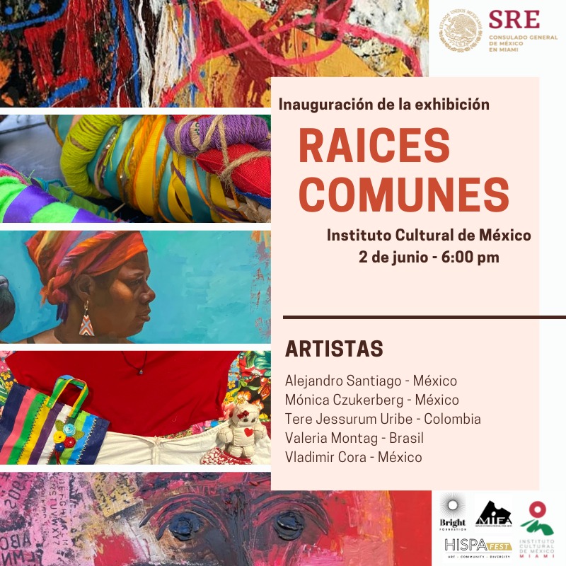 El Consulado General de México en Miami, a través del Instituto Cultural de México (ICM), invitan a la inauguración de “Raíces Comunes”, una exhibición con artistas de México, Colombia y Brasil que entre óleos, acrílicos y fibras recrean un pasado que aún persiste.