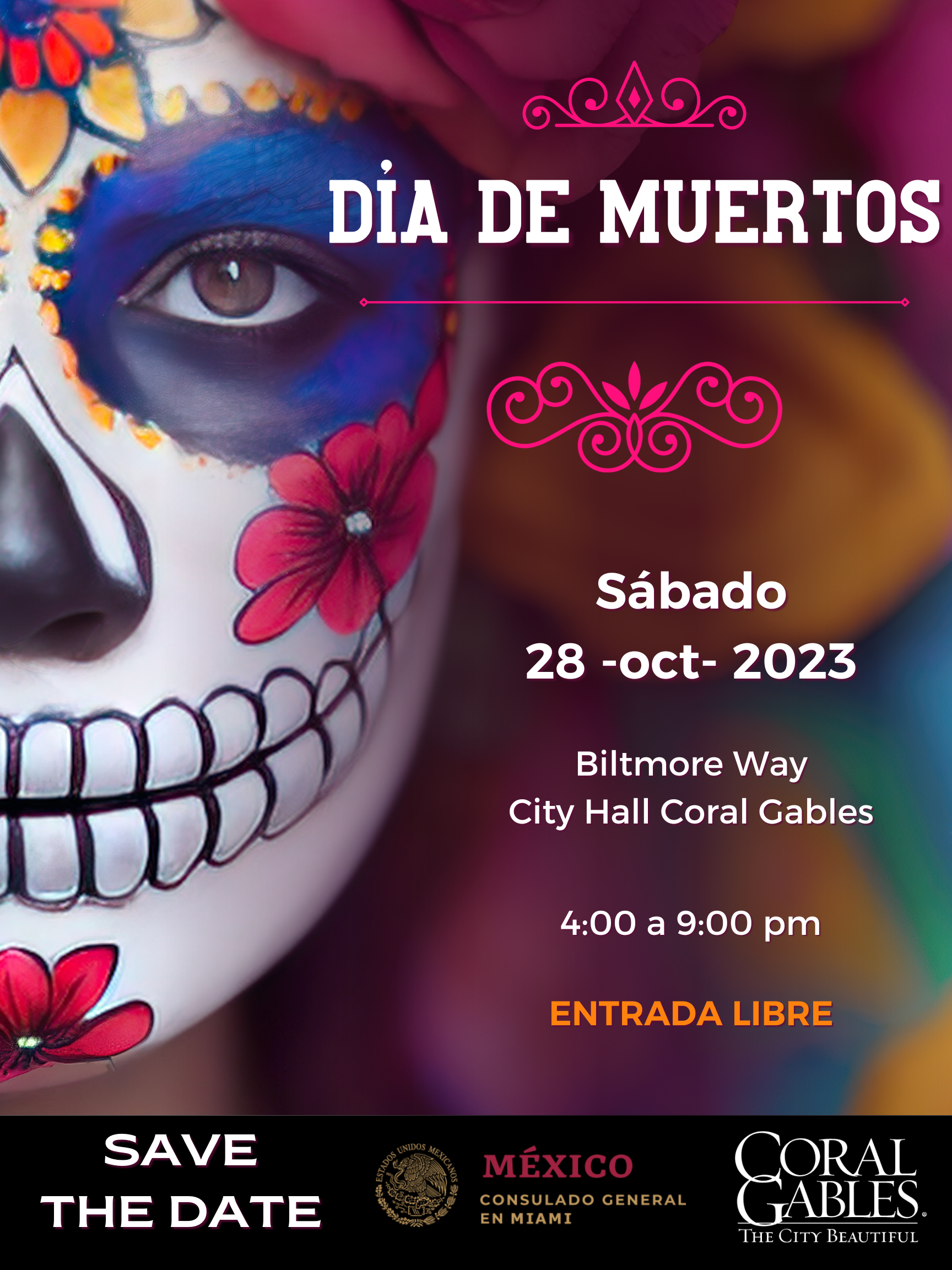 The Consulate General of Mexico in Miami and the city of Coral Gables celebrate the fourth edition of the renowned Mexican tradition of “Day of the Dead”, on Saturday, October 28th, from 4pm to 9pm. The event will be chaired by Alexia Núñez, the Acting Consul General, and Mayor Vince Lago.