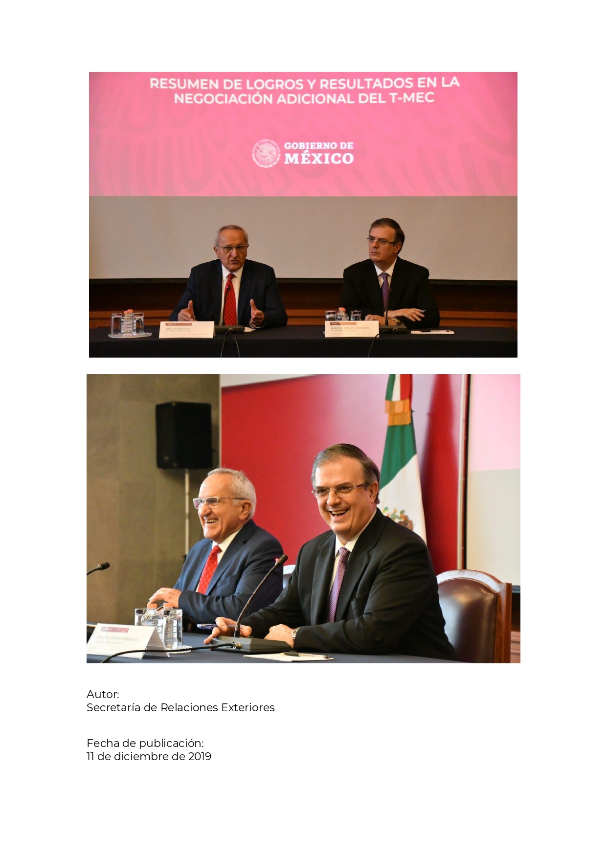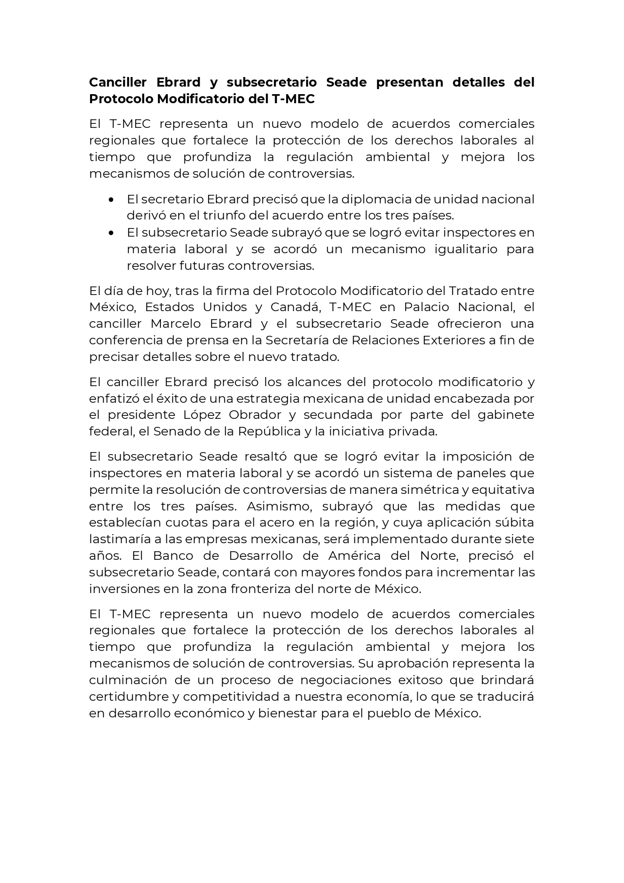 Comunicados Canciller Ebrard y subsecretario Seade presentan detalles del Protocolo Modificatorio del T-MEC