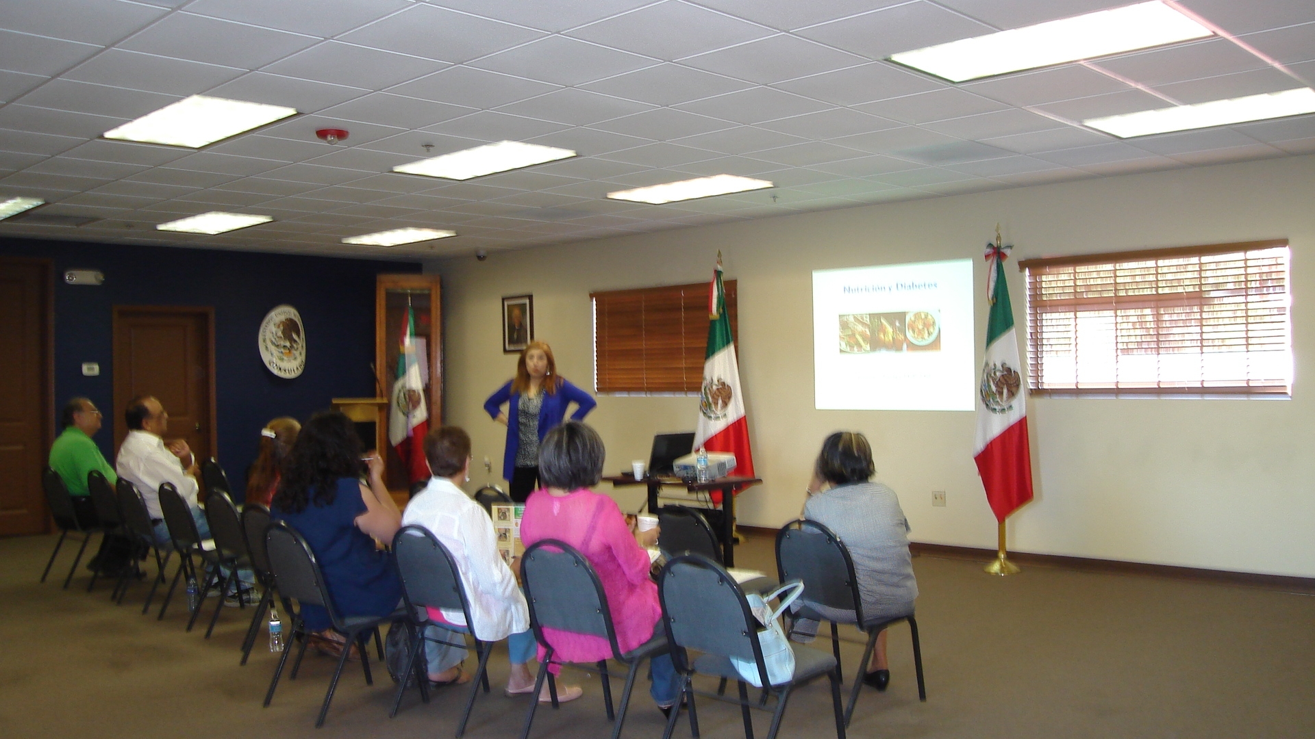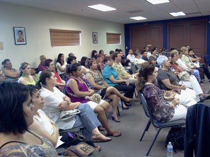 Jueves 4 de octubre de 2012. -En el Salón “Bicentenario” del Consulado General, la Dra. Eva Mazlum de Davis, Directora de la Asociación de Diabetes y Nutrición del Estado de Sonora, impartió una excelente conferencia dirigida a todo el público, enfocada en prevenir la obesidad en menores, que se ha convertido en un problema entre la población infantil y prevenir que este sector de la población no sea presa de diabetes.