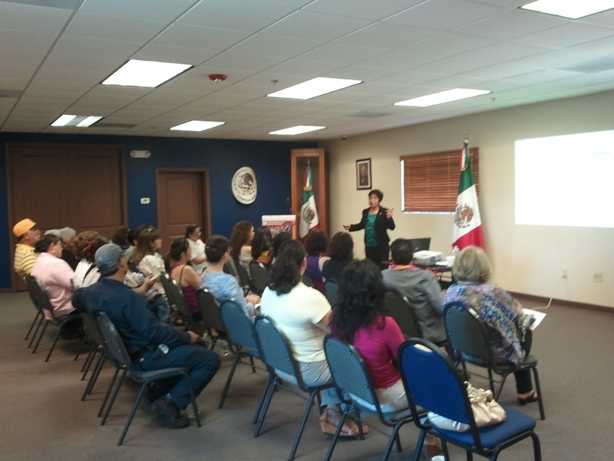 Miércoles 3 de octubre de 2012.- “Conferencia Recursos para Diabéticos”, impartida por Carmen Ramírez de la Oficina de Salud Fronteriza en Tucson, Arizona. En dicha conferencia se proporcionó información a los asistentes de las organizaciones que dan servicio a las personas que padecen de diabetes, así como información sobre donde deben recurrir en ciertos casos las personas que no cuenten con seguro médico.