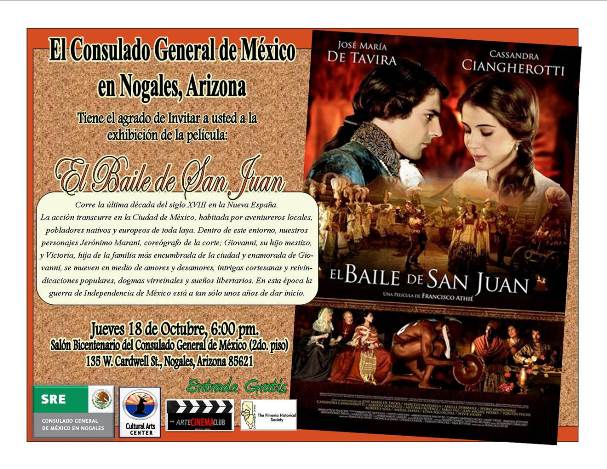 El jueves 18 de octubre de 2012, se exhibió la película “El Baile de San Juan” en el Salón Bicentenario de este Consulado General y protagonizada por José María de Tavira, Pedro Almendárez Jr, Cassandra Ciangherotti entre otros, como parte Programa Cultural.