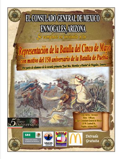 El sábado 5 de mayo de 2012, en el Parque Pierson de Nogales, Arizona, se conmemoró el 150º Aniversario de la Batalla de Puebla, con un evento musical en el que participaron diversos grupos de la comunidad, y previo al evento y como ya es tradición, se organizó el desfile donde estuvieron presentes las candidatas a Reina de las fiestas de mayo, y posteriormente durante el festival conmemorativo en el citado parque se llevó a cabo la selección y coronación de la reina.