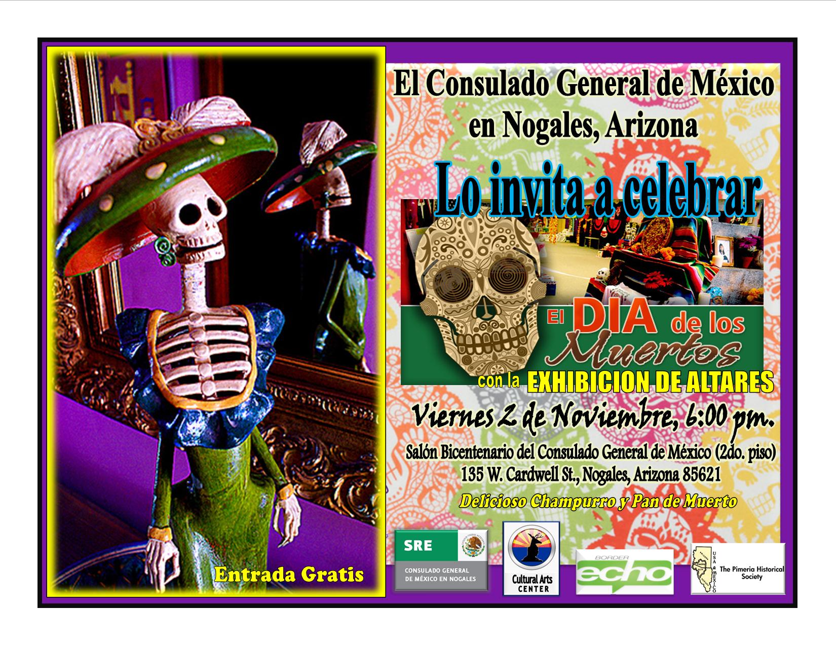 El Consulado General de México en colaboración con miembros de la organización “Nogales Community Development”, el Club de Oriundos “Nogalenses en Arizona,” la empresaria Sandra Kory, la organización “Juntos Unidos contra el Cáncer “, “Nuestra Casa”, albergue para mujeres que sufren violencia intrafamiliar, con el fin de preservar las tradiciones y costumbres de nuestro país, llevó a cabo la exhibición de altares en el Salón Bicentenario.