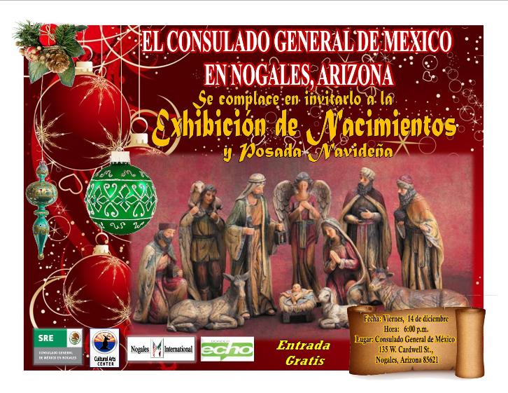 El 14 de diciembre, se llevó a cabo en el Salón Bicentenario de esta Representación Consular la “Exhibición de Nacimientos y Posada Navideña, organizado en colaboración con el Comité de Arte y Cultura de la Ciudad de Nogales, Arizona, la Revista Border Echo y el periódico local Nogales International.