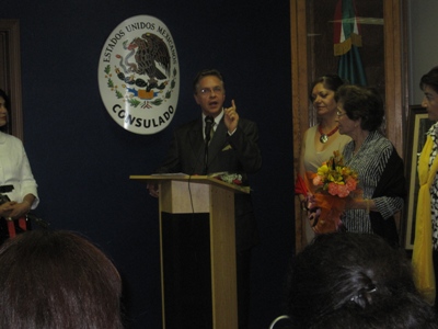 El Salón Bicentenario fue la sede de esta enriquecedora y brillante conferencia, en la cual el conferencista condujo a los asistentes por la historia y la cultura de México desde los olmecas y hasta la época actual, conminando al público en general a conocer México, los museos donde se exponen los murales de Diego Rivera, David Alfaro Siqueiros, así como la diversidad cultural de nuestro país y la colección “Andrés Blaisten” que se exhibirá próximamente en el Museo de Arte de Phoenix.