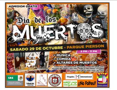 El Consulado General de México, en colaboración con el Comité de Arte y Cultura de Nogales, Arizona, el Distrito Escolar Unificado # 1, el Periódico Nogales International y la Revista Border Echo, con el fin de preservar las tradiciones y costumbres de nuestro país, llevaron a cabo el sábado 29 de octubre en el Parque Pierson de Nogales, Arizona, el “Festival del Día de Muertos”.