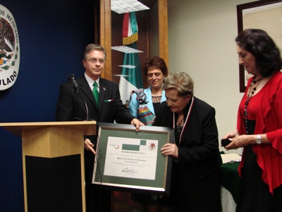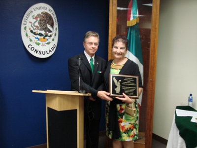Entrega del reconocimiento (Angel de la Independencia) a la Señora Esther Melendez de López, Concejal de la Ciudad de Nogales, Arizona el día 15 de septiembre de 2010. Dicho galardón instituido por el Cónsul General Jaime Paz y Puente Gutiérrez, se otorga una persona que por su colaboración y entrega es un “Angel” para la Comunidad mexicana.
