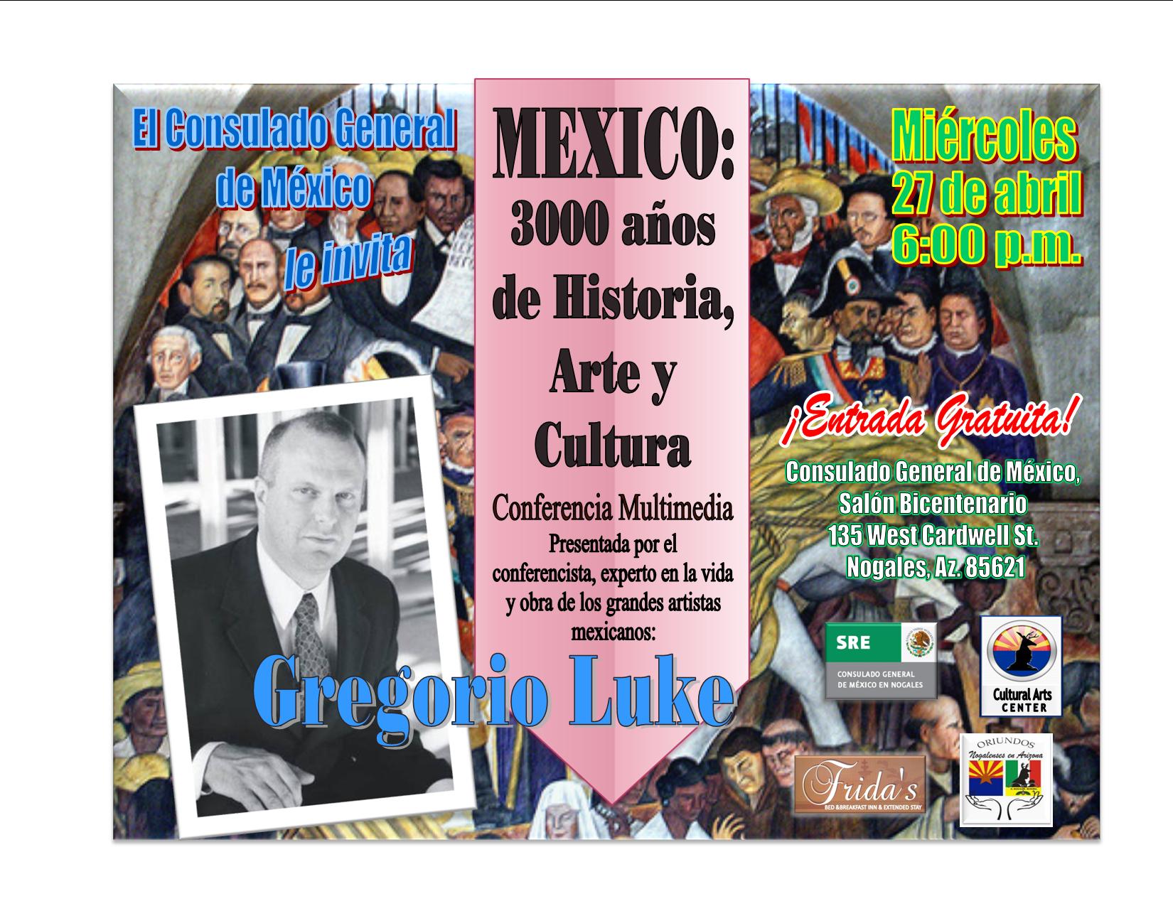 El miércoles 27 de abril a las 6:00, se llevó a cabo la presentación de la Conferencia “México; 3000 años de Historia, Arte y Cultura “por Gregorio Luke, que incluyó a los grandes maestros del modernismo en México.