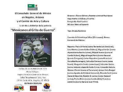El martes 3 de noviembre, en el “Salón Bicentenario” de este Consulado General, y en colaboración con el Comité del Bicentenario del Club de Oriundos Nogalenses y “Pimería Alta Historical Society se proyectó la película “Memorias de un Mexicano” del Ingeniero Salvador Toscano.
