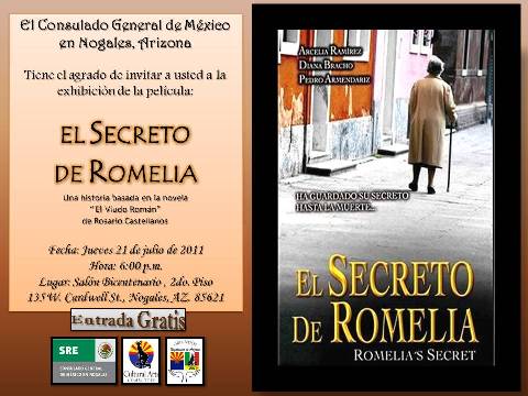 El jueves 21 de julio de 2011 en punto de la 6:00 p.m., en el Salón Bicentenario, se exhibió la Película “EL Secreto de Romelia” una historia basada en la novela “El Viudo de Román” de Rosario Castellanos, que constituye la opera prima de la directora Busi Cortéz