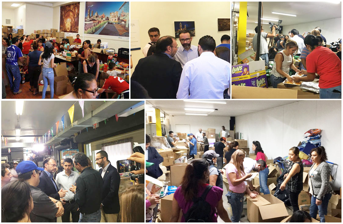El sábado 23 de septiembre, el Secretario de Relaciones Exteriores, Dr. Luis Videgaray Caso, visitó dos de los centros de acopio que la comunidad mexicana estableció en el área tri estatal, con el fin de recolectar víveres que serán enviados a las víctimas de los sismos ocurridos en México.