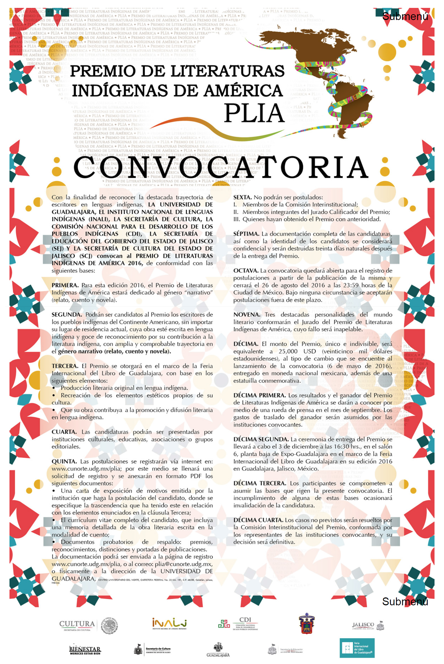 Las candidaturas de los escritores a participar podrán ser presentadas por instituciones culturales, educativas, asociaciones o grupos editoriales. Las postulaciones podrán ser registradas vía internet en la dirección www.cunorte.udg.mx/plia. Por este medio podrá llenarse una solicitud de registro. Los resultados se darán a conocer en septiembre y la ceremonia de entrega tendrá verificativo el 3 de diciembre.