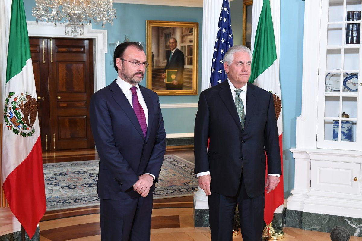 Con respecto a las reuniones con la administración tuvimos por la tarde, el día de ayer, nuestra cuarta reunión de trabajo ya con el Secretario Tillerson; fue una reunión útil y oportuna, en la cual el motivo fundamental fue revisar los distintos aspectos de la relación bilateral, es una relación en la que ya se han dado contacto entre las distintas contrapartes, por ejemplo: el Secretario del Comercio de los Estados Unidos se ha reunido ya con el Secretario Guajardo, el Secretario Meade, de Hacienda, ha tenido ya encuentros con su homólogo, el Secretario del Tesoro, los Procuradores han tenido reuniones de trabajo-; y es importante que las áreas que compete esta relación el Departamento de Estado y la Secretaría de Relaciones Exteriores evaluemos con periodicidad frecuente cómo van estos aspectos de la relación, si se está dando acorde como hablaron los Presidentes de ambos países a finales de enero por vía telefónica, que los equipos seguirían trabajando en los distintos temas de la relación bilateral.