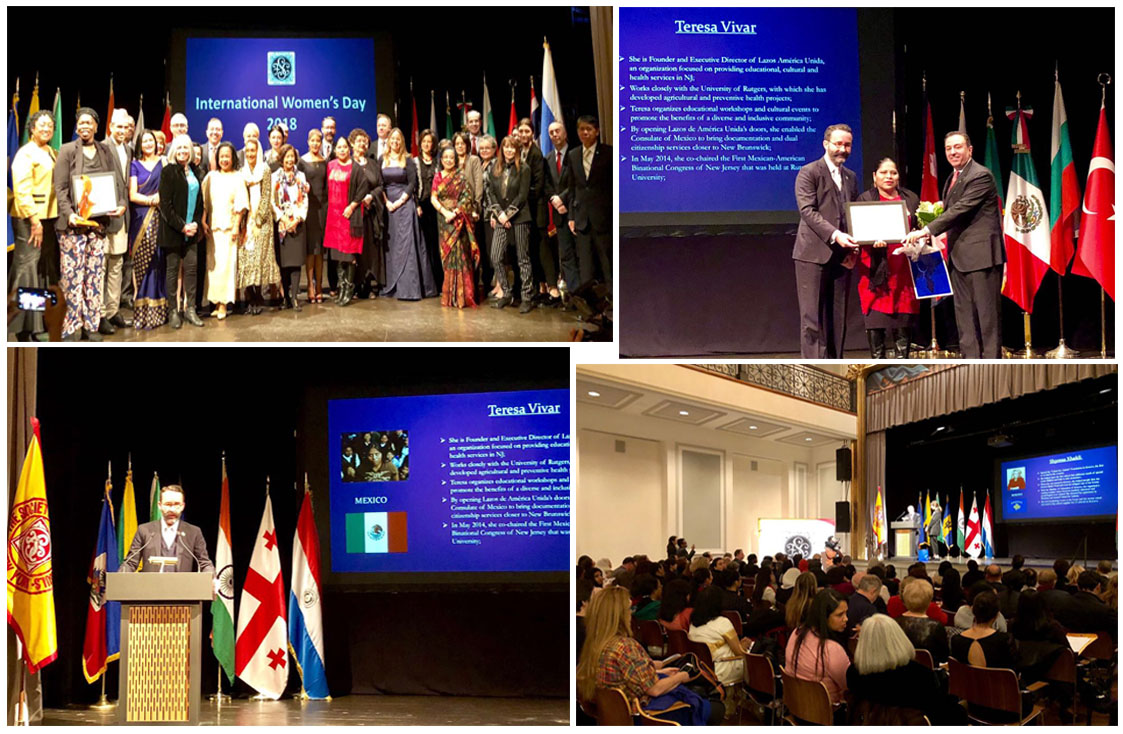 En el marco del evento, se distinguió a la activista mexicana Teresa Vivar, fundadora y directora ejecutiva de Lazos de América Unida quien recibió el reconocimiento de manos del Cónsul General de México en Nueva York, Emb. Diego Gomez Pickering,