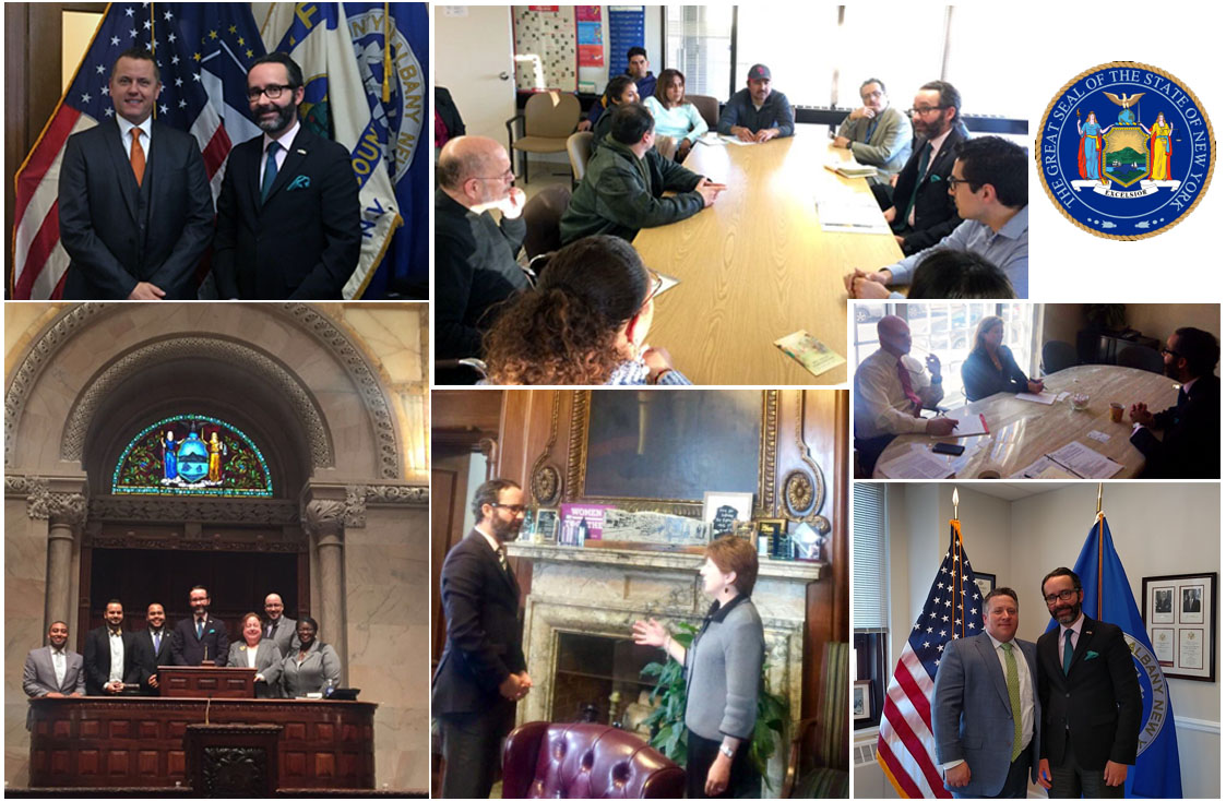 En el primer día de la visita, asistió a una Ceremonia de reconocimientos en las cámaras del Senado y la Asamblea Estatal de Nueva York, en la cual tuvo la oportunidad de dialogar con los senadores y asambleístas presentes, acerca de la gran contribución de la comunidad mexicana en esta área del país. Se señaló que en el condado de Albany, hay un total de 1430 connacionales que corresponde al 0.5% de la población total; de los cuales una comunidad de Triquis provenientes de Guerrero, habita en esta zona; siendo una comunidad aislada, pero que a la vez, de acuerdo a las autoridades locales, ha demostrado su riqueza cultural, a través de celebraciones como La Guelaguetza.