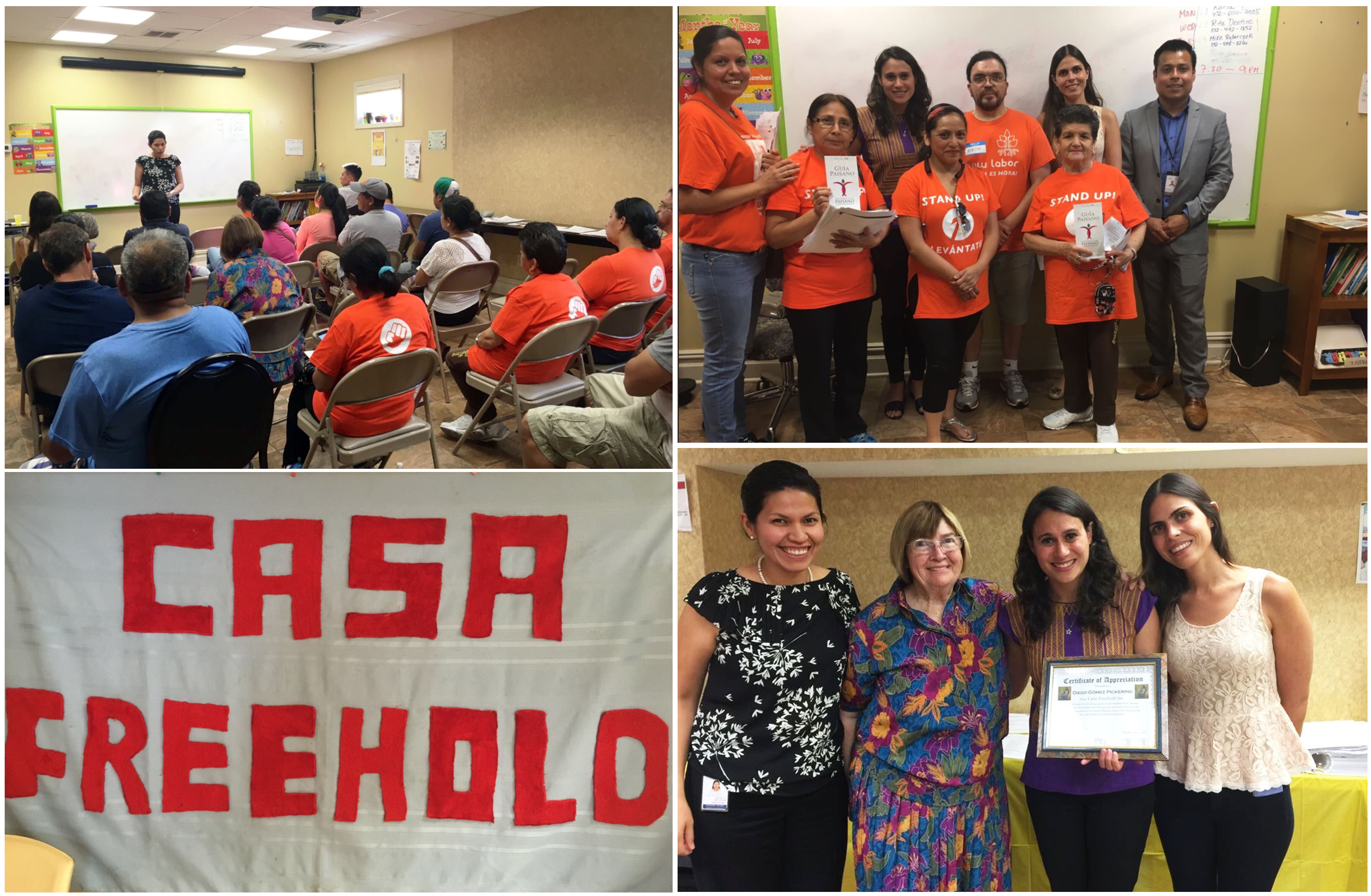 Casa Freehold, fue fundada en el año 2004, ante el incremento de la comunidad migrante en dicha ciudad. Su objetivo principal es asistir a las personas recién llegadas a la zona. Parte de sus servicios comprende proveer información en materia de migración, educación, vivienda y empleo.
