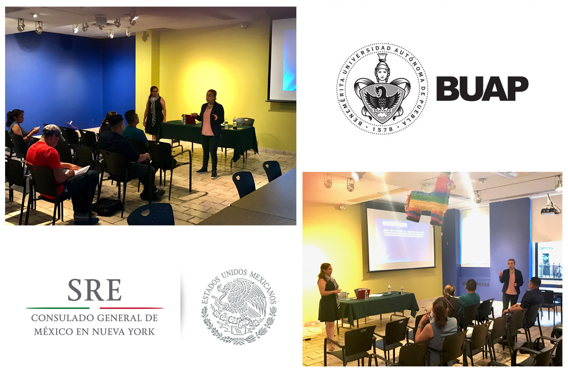 Los días 17 y 24 de julio, en la sala Octavio Paz del Consulado General de México en Nueva York, se impartió el curso “Taller Básico de Plan de Negocios” por las maestras Martha Patricia Tello Cano y Nadia Vianney Hernández Carreón, catedráticas de la Benemérita Universidad Autónoma de Puebla (BUAP).