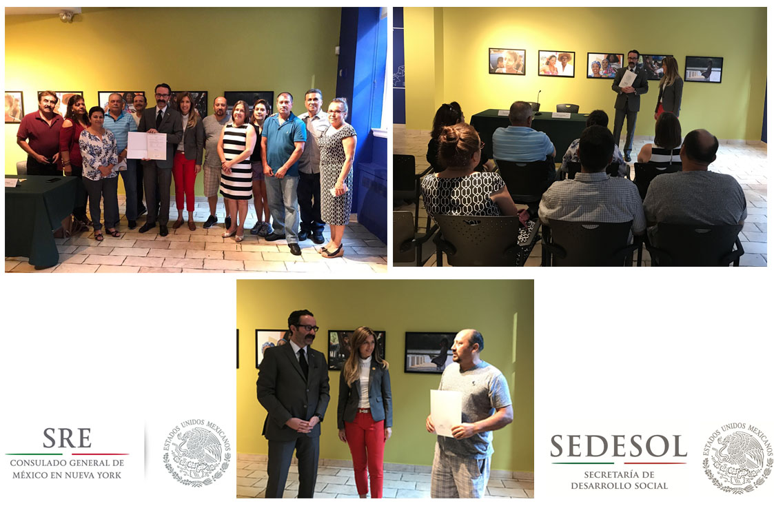 El pasado primero de agosto, el Cónsul General de México en Nueva York, Diego Gómez Pickering, encabezó la ceremonia de entrega de Toma de Nota de la Federación Teca Jalisco en las instalaciones del Consulado General de México, en el marco del programa “3x1 para Migrantes”, que promueve la Secretaría de Desarrollo Social (SEDESOL).