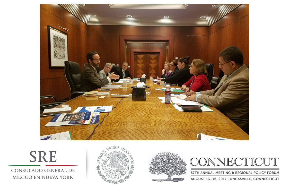 El lunes 14 de agosto, el Cónsul General de México en Nueva York, Diego Gómez Pickering participó en un diálogo con el Consejo de Comercio del Este (ETC por sus siglas en inglés) en el estado de Connecticut, en el marco de la Conferencia Regional del Este del Consejo de Gobiernos Estatales.