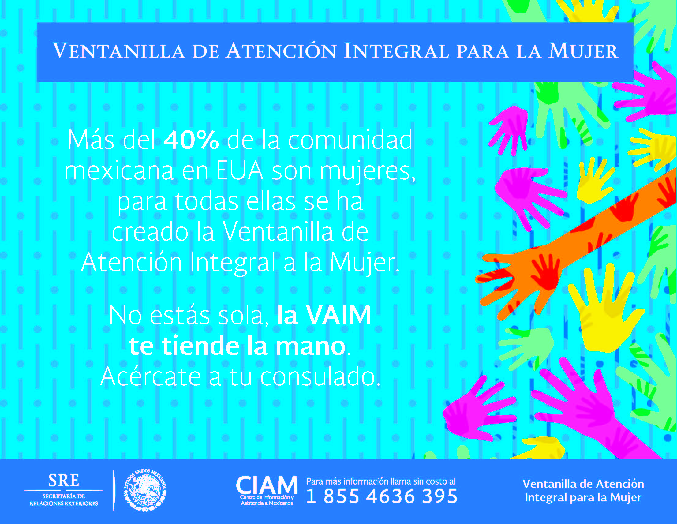 La actividad de la Ventanilla de Atención Integral para la Mujer VAIM va más allá de la operación de un espacio determinado dentro del Consulado, pues es un concepto transversal que comunica todos los servicios que ofrecen las representaciones consulares a partir de la perspectiva de género.