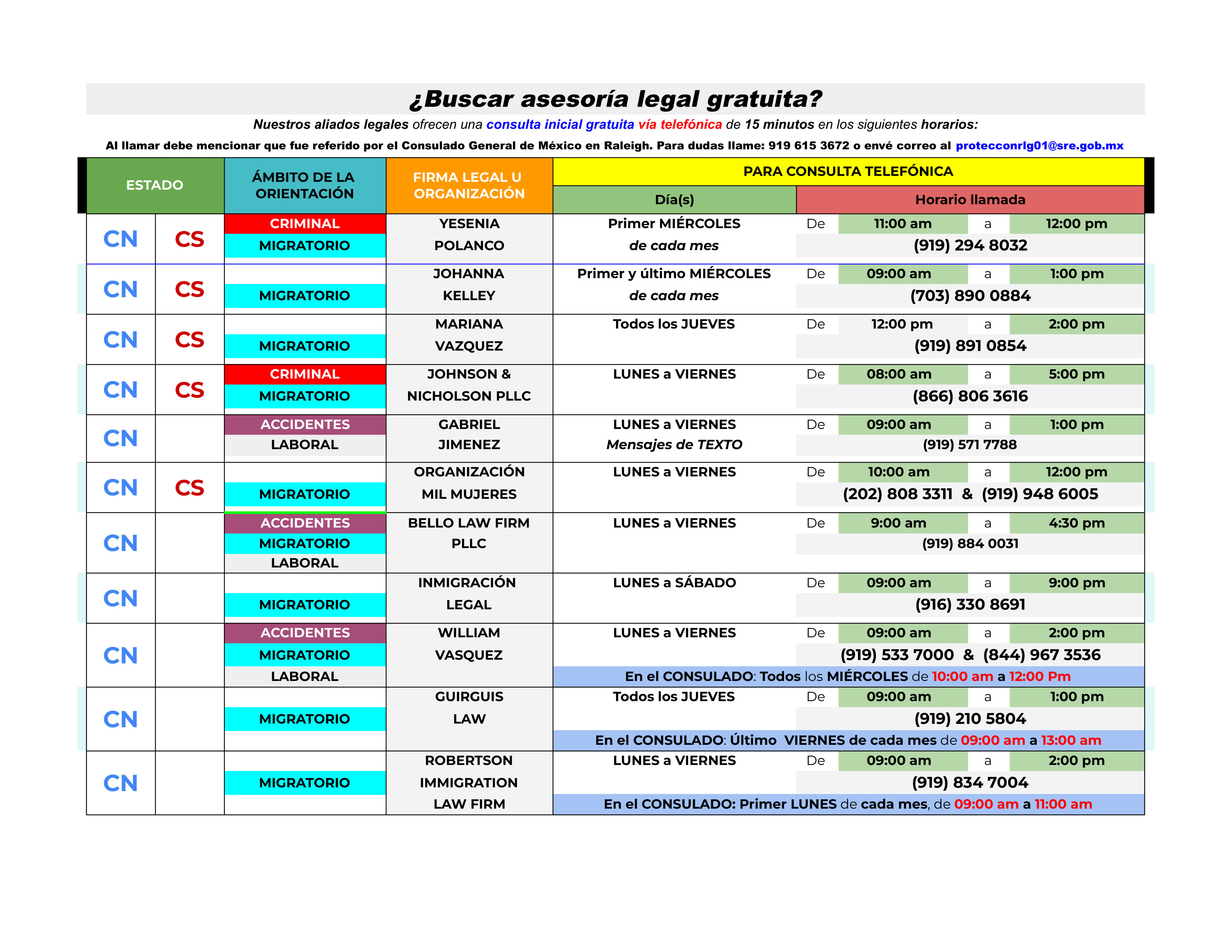 En esta sección encontrará una galería de infografías con información relevante del Departamendo de Protección del Consulado General de México en Raleigh.
