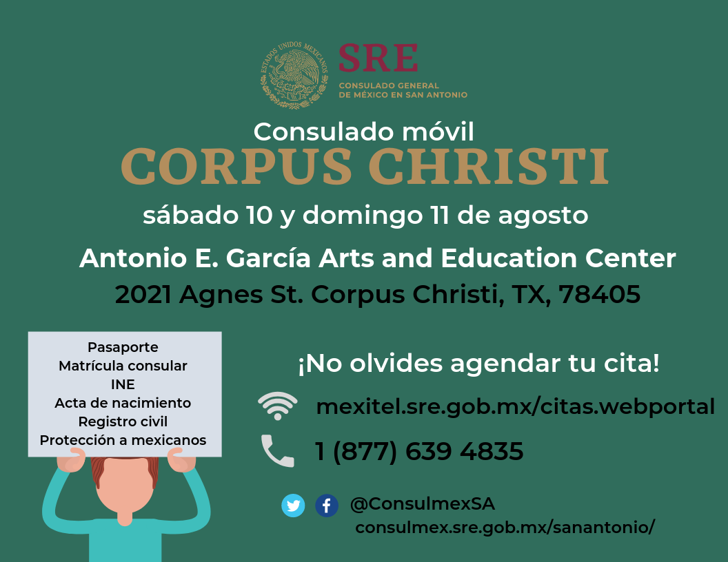 El consulado móvil brindará servicios de documentación, registro civil y protección a mexicanos en Corpus Christi, TX.