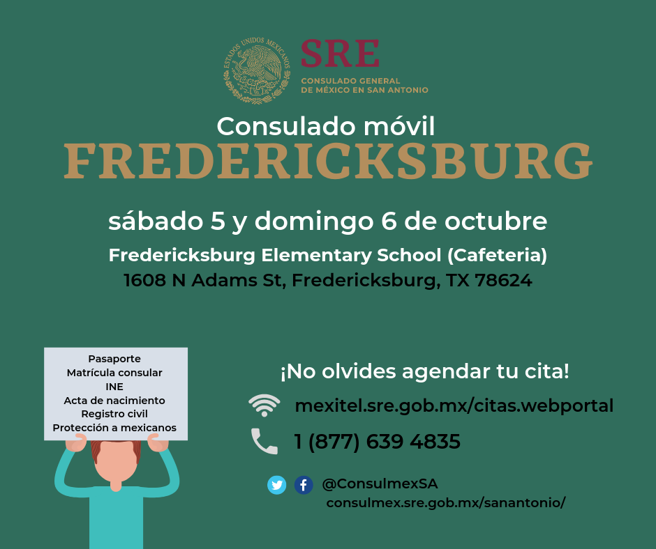 El consulado móvil brindará servicios de documentación, registro civil y protección a mexicanos en Fredericksburg, TX.